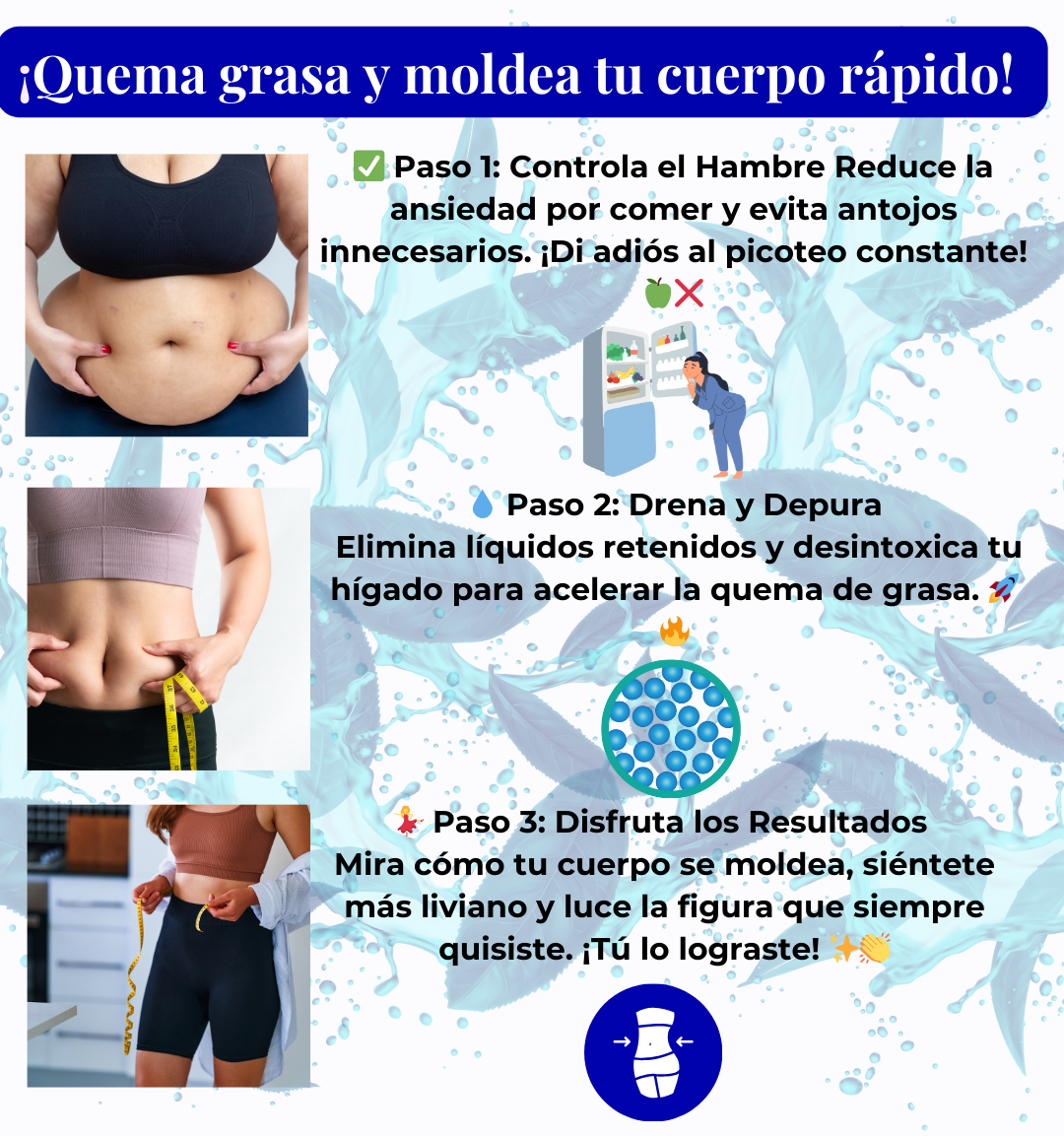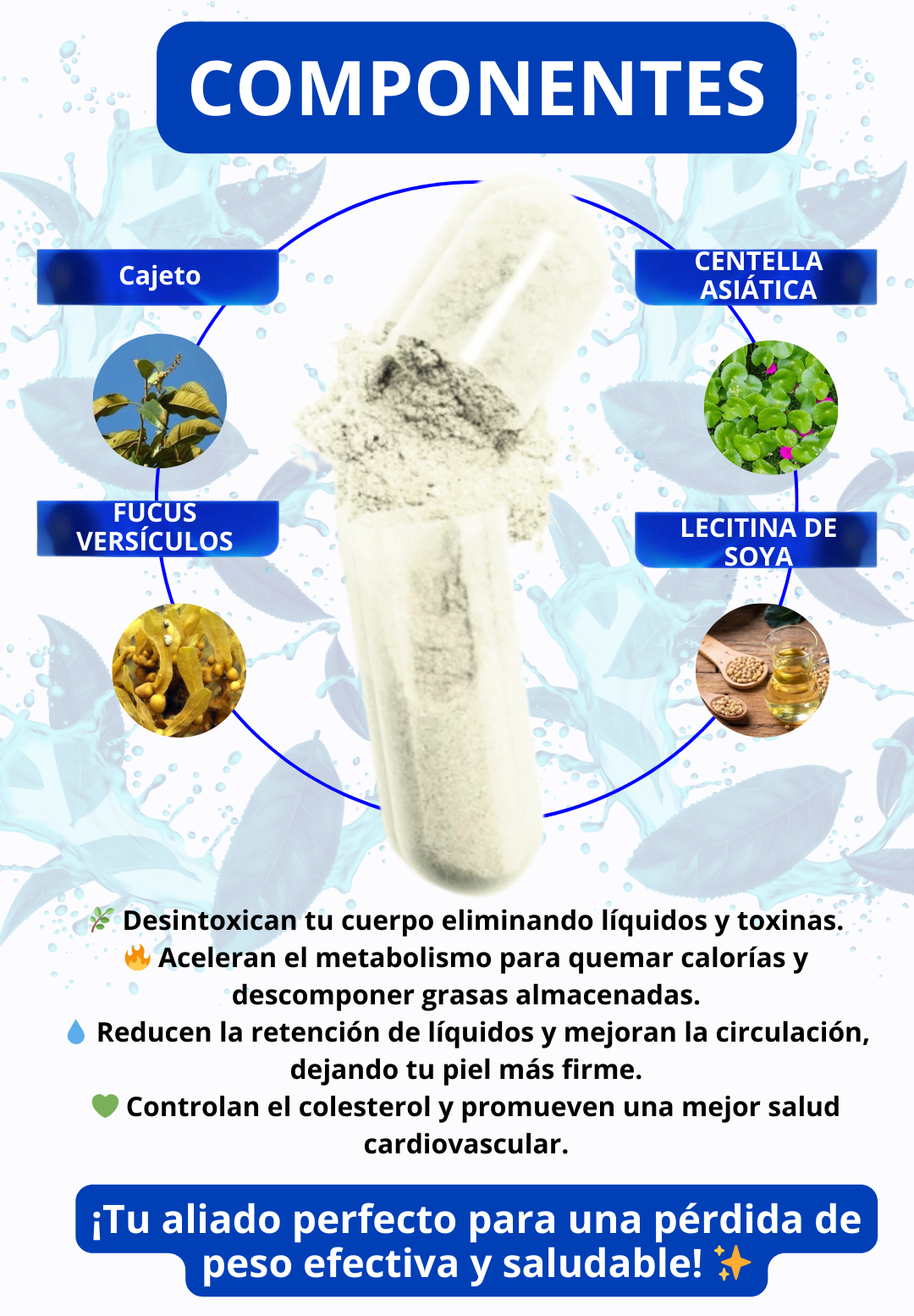 Actúa controlando el apetito, eliminando líquidos retenidos, acelerando la quema de grasa y desintoxicando el organismo.